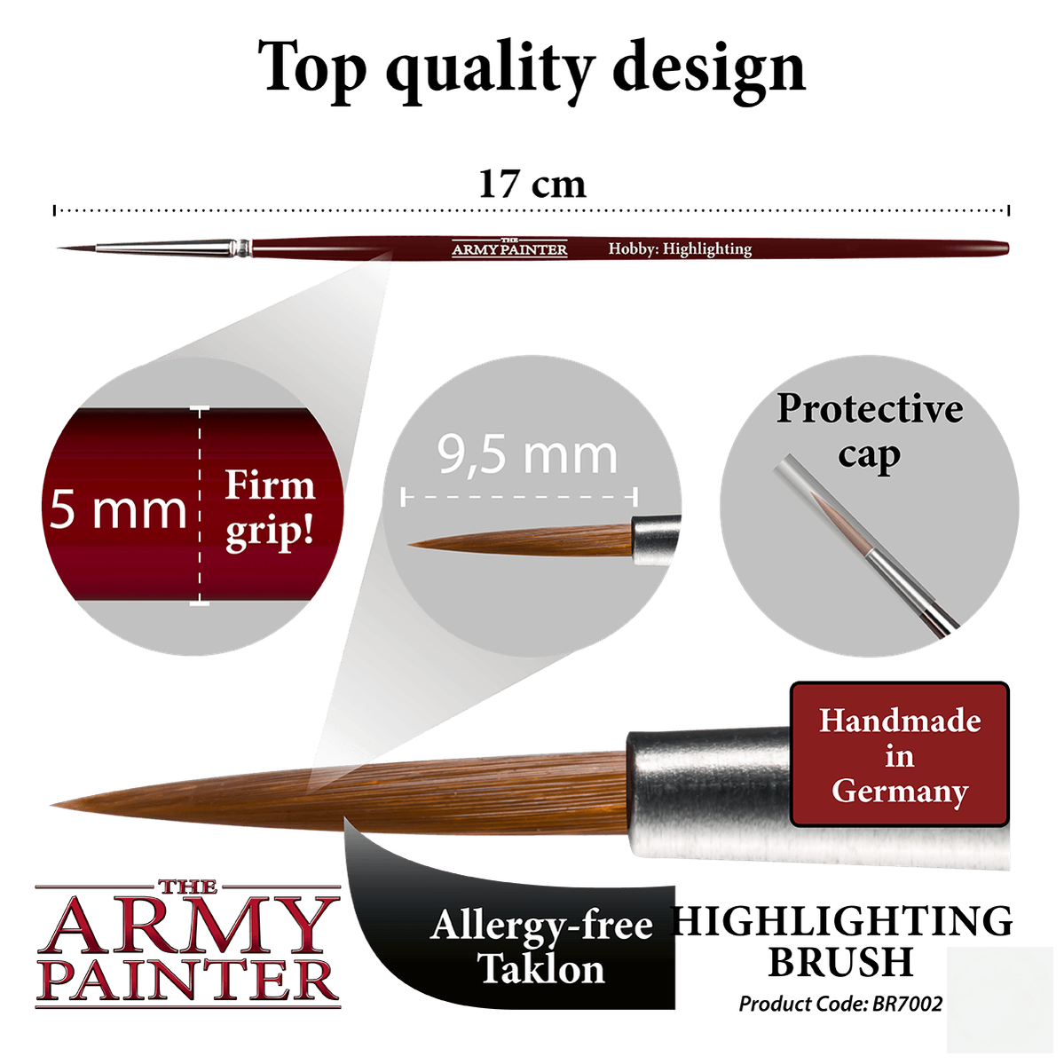 A great all round brush for making detailed highlights on your models. The tip is sharp making it useful for those hard-to-get areas of a miniature.