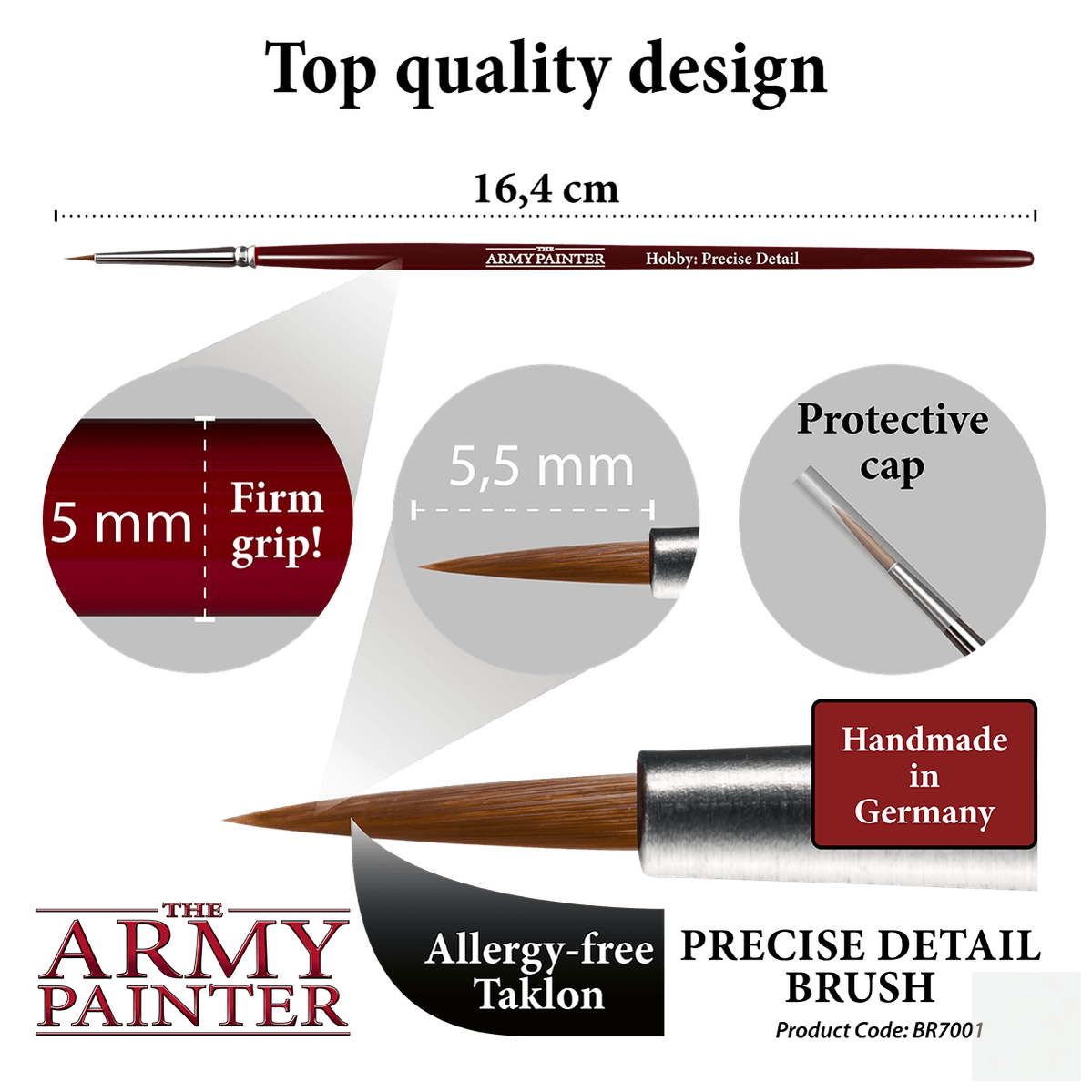 This brush will allow you to perform any precision paint job you want on your miniatures. It has a very sharp point, is small and thin enough to get anywhere on a model.
