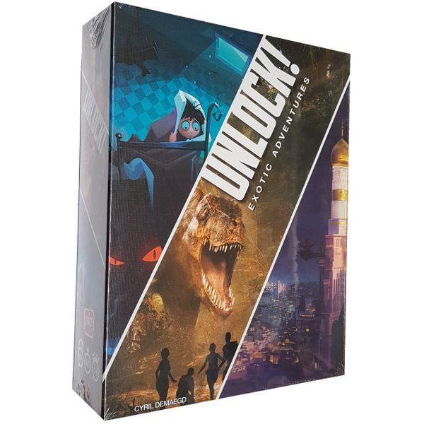 Unlock! is a cooperative card game inspired by escape rooms that uses a simple system which allows you to search scenes, combine objects, and solve riddles. Play Unlock! to embark on great adventures, while seated at a table using only cards and a companion app that can provide clues, check codes, monitor time remaining, etc. The three scenarios are: