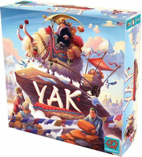 Yak is a board game about gathering the various materials needed to build a stone tower, with each village receiving a caravan of merchants bringing in their wares for trade. Taking place across various villages situated in the Himalayan Mountains – which span across multiple countries in Asia, from India to China to Nepal – Yak sees two to four players attempting to exchange their goods for stones for their impending tower.